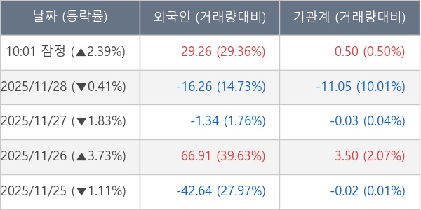 ※ 사모펀드 등 일부 기관의 순매매량은 표시되지 않음