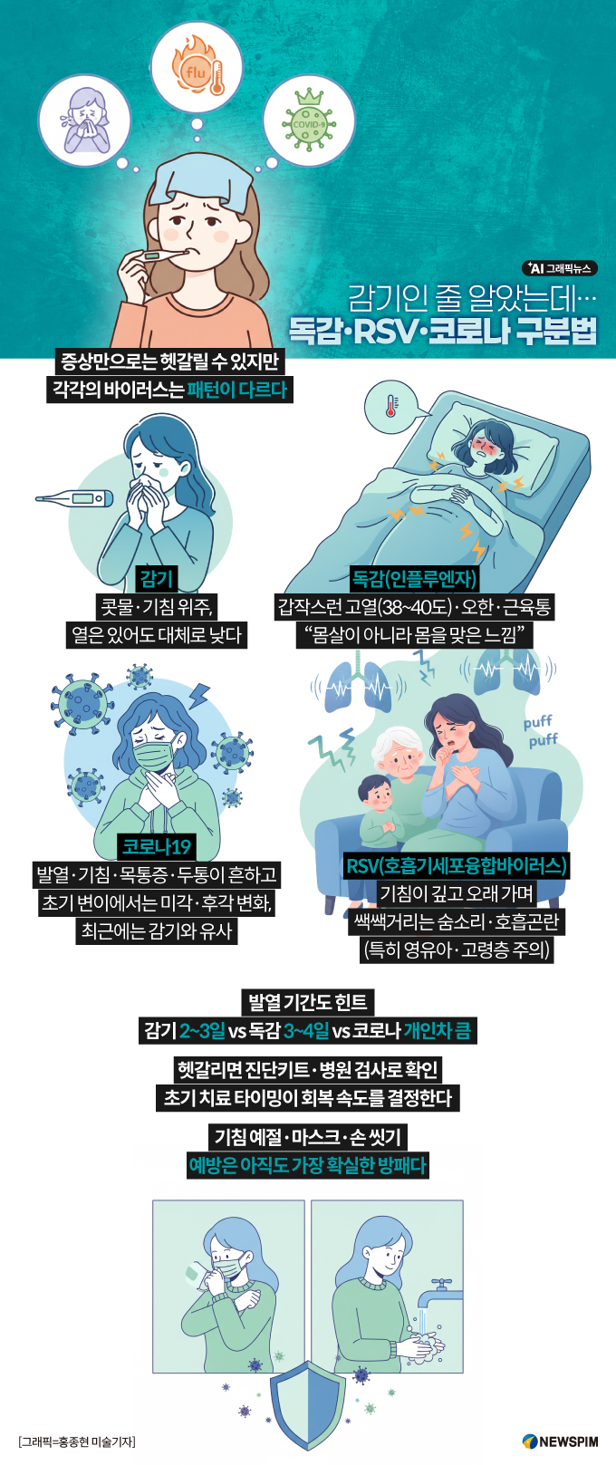 [AI그래픽뉴스] 감기인 줄 알았는데… 독감·RSV·코로나 구분법
