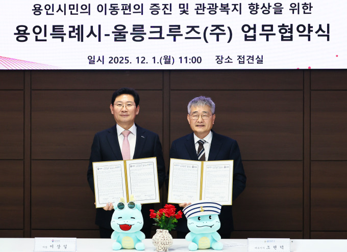 [용인=뉴스핌] 노호근 기자 = 용인특례시는 1일 시청 4층 접견실에서 울릉크루즈㈜와 '용인시민 이동편의 증진 및 관광복지 향상을 위한 업무협약'을 체결했다.