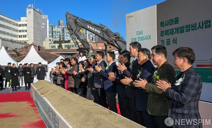 [서울=뉴스핌] 양윤모 기자 = 오세훈 서울시장과 우원식 국회의장,오승록 노원구청장이 1일 오전 서울 노원구 '중계본동 주택재개발 정비사업 기공식'에서 박수를 치고 있다. 서울의 마지막 달동네라 불리는 중계동 30-3번지 일대 ‘백사마을’은 지하 4층∼지상 35층, 26개 동, 총 3178가구(임대 565가구 포함) 규모의 대단지 아파트로 2029년 완공을 목표로 하고 있다. [사진=노원구청] 2025.12.01 yym58@newspim.com