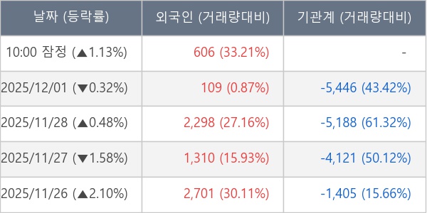 [표] 외국인ㆍ기관 순매매량 (단위 주)