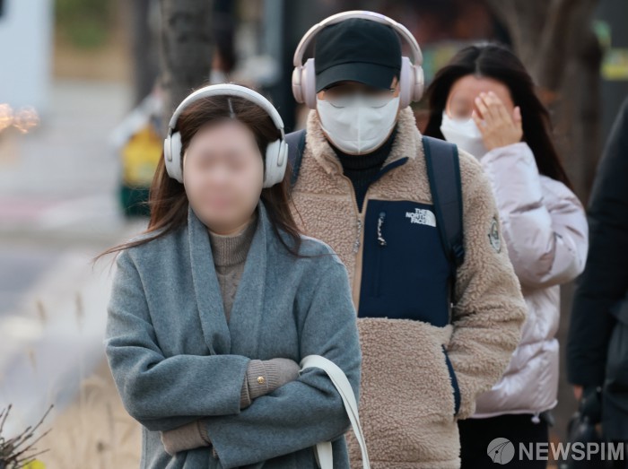 [서울=뉴스핌] 김학선 기자 = 전국 대부분 지역의 아침 기온이 영하권으로 떨어져 본격적인 겨울 추위가 시작된 2일 오전 서울 종로구 광화문역 인근에서 시민들이 두꺼운 옷을 입고 몸을 움츠린 채 출근을 서두르고 있다. 2025.12.02 yooksa@newspim.com