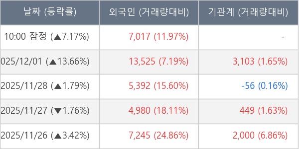 [표] 외국인ㆍ기관 순매매량 (단위 주)