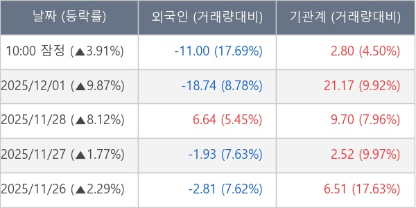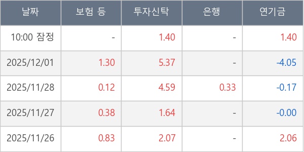 [표] 주요 기관별 순매매량 (단위 만주)