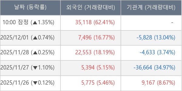 [표] 외국인ㆍ기관 순매매량 (단위 주)