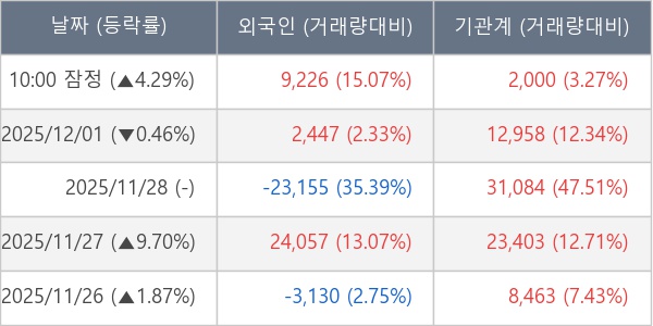 ※ 사모펀드 등 일부 기관의 순매매량은 표시되지 않음