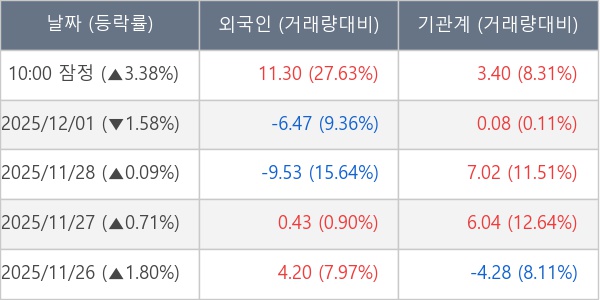 ※ 사모펀드 등 일부 기관의 순매매량은 표시되지 않음