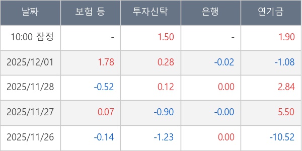 [표] 주요 기관별 순매매량 (단위 만주)