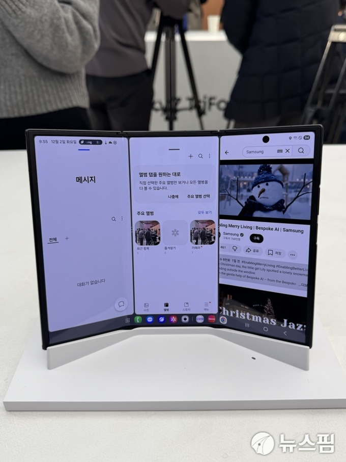[서울=뉴스핌] 김정인 기자 = 삼성전자 '갤럭시 Z 트라이폴드'가 거치대에 놓인 모습. 2025.12.02 kji01@newspim.com