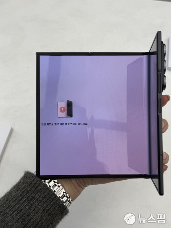 또 하나 눈에 띄는 점은 접는 순서가 고정돼 있다는 점이다. 오른쪽→왼쪽 순으로 접도록 설계돼, 반대로 접으려 하면 경고 알람이 울린다. 폼팩터 특성상 불가피한 방식이지만, 초기에 적응 과정이 필요하다.