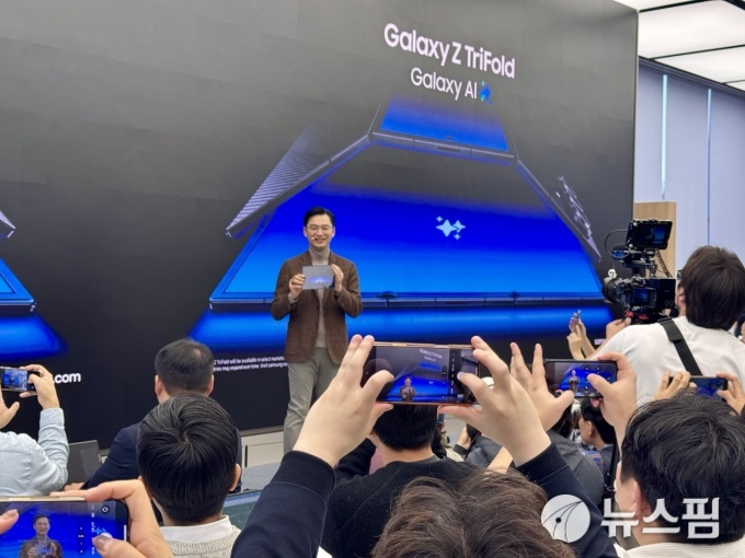 [서울=뉴스핌] 김정인 기자 = 임성택 삼성전자 한국총괄 부사장이 '갤럭시 Z 트라이폴드'를 소개하고 있다. 2025.12.02 kji01@newspim.com