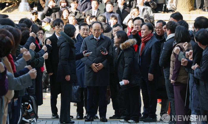 [서울=뉴스핌] 최지환 기자 = 국회의 12·3 비상계엄 해제 의결 방해 의혹을 받는 추경호 전 국민의힘 원내대표가 2일 오후 서울 서초구 서울중앙지방법원에서 열린 영장실질심사(구속 전 피의자 심문)에 출석하고 있다. 2025.12.02 choipix16@newspim.com