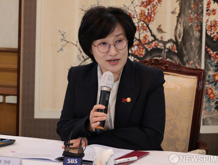 | [서울=뉴스핌] 이길동 기자= 원민경 성평등가족부 장관이 3일 서울 종로구 정부서울청사에서 열린 금융분야 여성 임원 현장 소통 간담회에서 인사말을 하고있다.2025.12.03 gdlee@newspim.com |