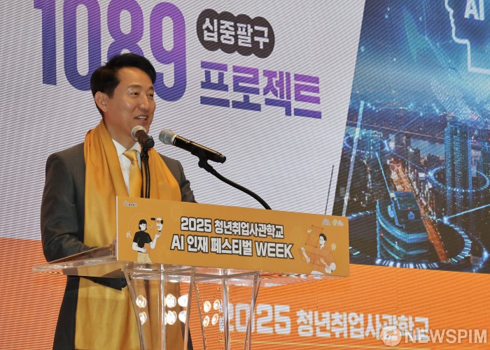 [서울=뉴스핌] 양윤모 기자 = 오세훈 서울시장이 2일 오후 서울 동대문구 DDP 아트홀에서 개최된 '2025 청년취업사관학교 AI 인재 얼라이언스 출범식'행사에 참석 비젼을 선포하고 있다. 이번 행사는 AI 시대에 필요한 역량을 쉽고 재미있게 경험할 수 있도록 기획된 개방형 지역 연계 축제이다. 2025.12.02 yym58@newspim.com