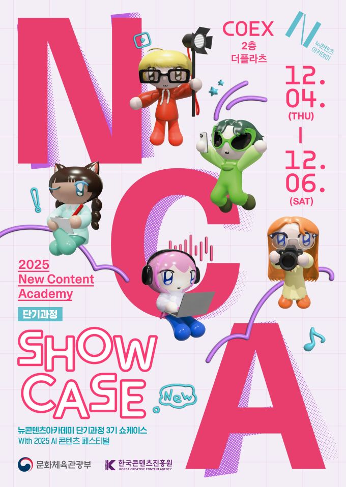 [서울=뉴스핌] 이지은 기자 = 문화체육관광부와 한국콘텐츠진흥원은 '뉴콘텐츠아카데미 단기과정 3기 쇼케이스'를 서울 코엑스에서 열리는 'AI 콘텐츠 페스티벌 2025'에서 공개한다고 3일 밝혔다.