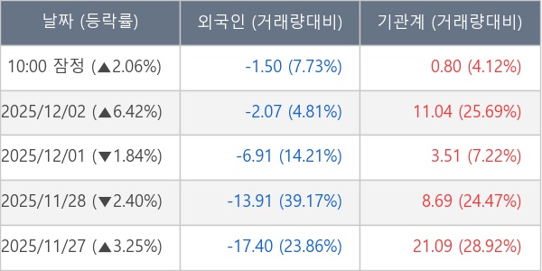 ※ 사모펀드 등 일부 기관의 순매매량은 표시되지 않음