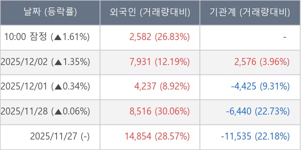 [표] 외국인ㆍ기관 순매매량 (단위 주)