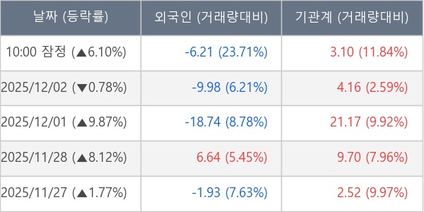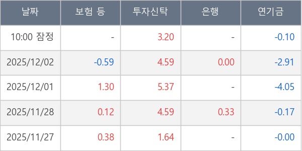 [표] 주요 기관별 순매매량 (단위 만주)