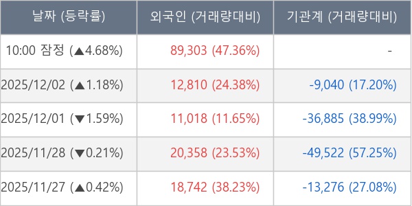[표] 외국인ㆍ기관 순매매량 (단위 주)
