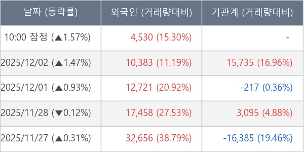 [표] 외국인ㆍ기관 순매매량 (단위 주)