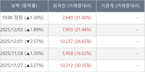 [표] 외국인ㆍ기관 순매매량 (단위 주)