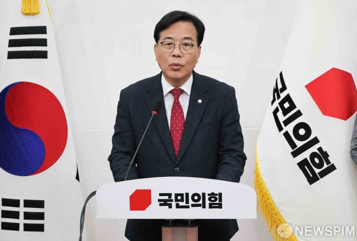 [서울=뉴스핌] 윤창빈 기자 = 송언석 국민의힘 원내대표가 3일 서울 여의도 국회에서 열린 현안관련 기자회견에서 모두발언을 하고 있다. 2025.12.03 pangbin@newspim.com