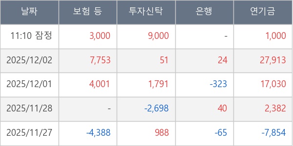 ※ 사모펀드 등 일부 기관의 순매매량은 표시되지 않음