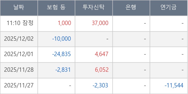 ※ 사모펀드 등 일부 기관의 순매매량은 표시되지 않음