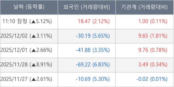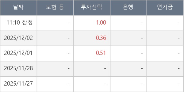 [표] 주요 기관별 순매매량 (단위 만주)