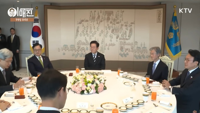 이날 오찬에는 우원식 국회의장, 조희대 대법원장, 김상환 헌법재판소장, 김민석 국무총리, 노태악 중앙선거관리위원장이 참석했다. 대통령실에서는 우상호 정무수석과 이규연 홍보소통수석이 함께했다.