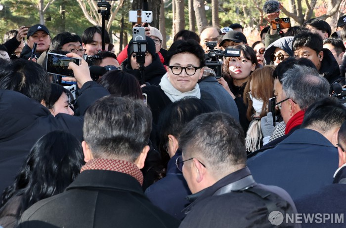[서울=뉴스핌] 최지환 기자 = 한동훈 전 국민의힘 대표가 3일 오후 여의도 국회 국회도서관 앞에서 12.3 비상계엄 1주년 관련 기자회견을 마치고 차량에 탑승하고 있다. 2025.12.03 choipix16@newspim.com