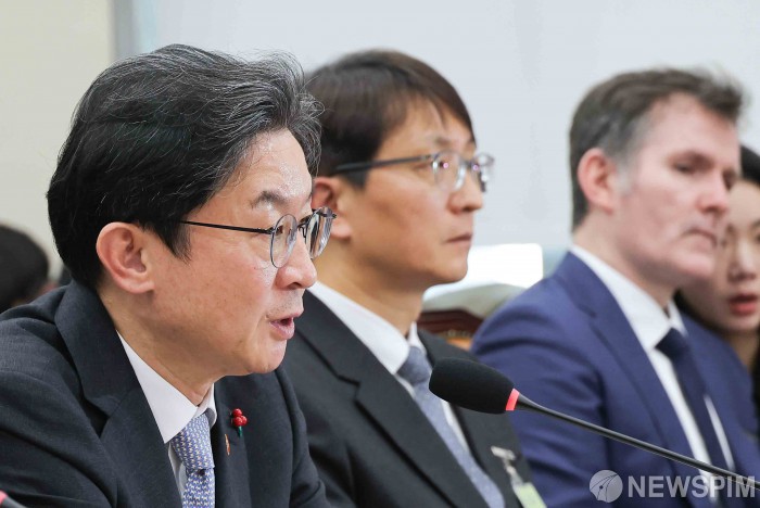 [서울=뉴스핌] 윤창빈 기자 = 이억원 금융위원장이 3일 서울 여의도 국회 정무위원회에서 열린 쿠팡 개인정보 유출 관련 현안질의에서 의원 질문에 답변하고 있다. 2025.12.03 pangbin@newspim.com