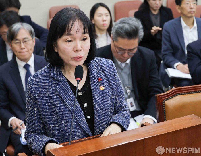[서울=뉴스핌] 윤창빈 기자 = 송경희 개인정보보호위원장이 3일 서울 여의도 국회 정무위원회에서 열린 쿠팡 개인정보 유출 관련 현안질의에서 현안보고를 하고 있다. 2025.12.03 pangbin@newspim.com