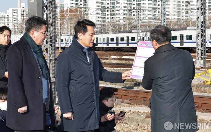 [서울=뉴스핌] 양윤모 기자 = 오세훈 서울시장과 오승록 노원구청장이 3일 오후 서울 노원구 노원로 573번지 창동차량기지에서 개최된 '진접차량기지 시험운행 개시 기념행사'에 참석 사전 브리핑을 받고 있다. 진접으로 이동하는 창동차량기지 일대는 2028년 착공을 목표로 '강북권 대개조-강북 전성시대' 사업의 핵심인 서울디지털바이오시티(S-DBC)가 들어선다. 2025.12.03 yym58@newspim.com