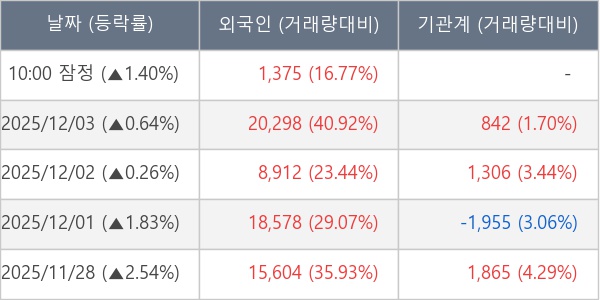 [표] 외국인ㆍ기관 순매매량 (단위 주)