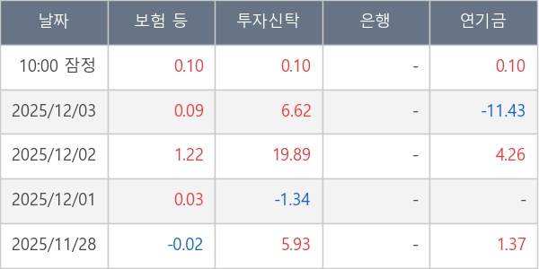 [표] 주요 기관별 순매매량 (단위 만주)