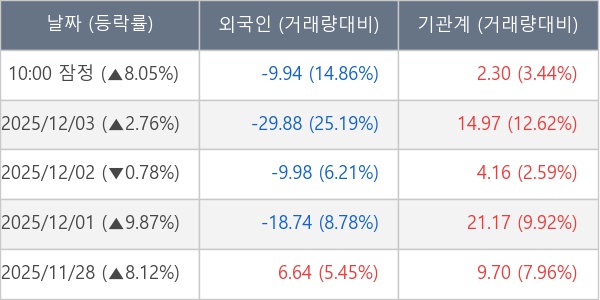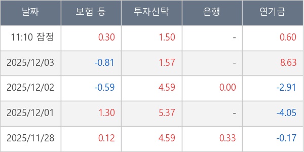 ※ 사모펀드 등 일부 기관의 순매매량은 표시되지 않음