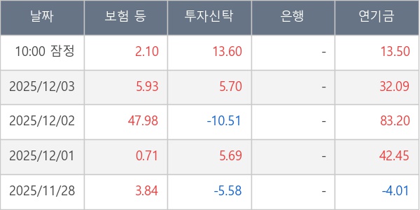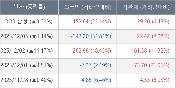 ※ 사모펀드 등 일부 기관의 순매매량은 표시되지 않음