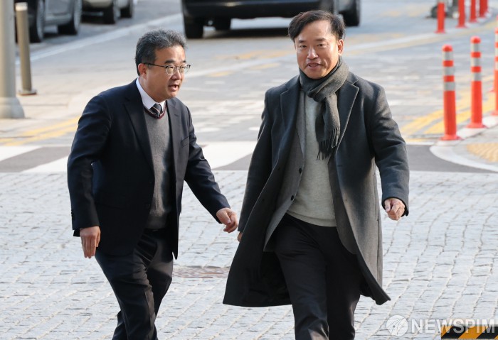 [과천=뉴스핌] 최지환 기자 = 김종철 방송미디어통신위원회 위원장 후보자가 4일 오전 경기 과천시 한 오피스텔에 마련된 인사청문회 준비 사무실로 출근하고 있다. 2025.12.04 choipix16@newspim.com