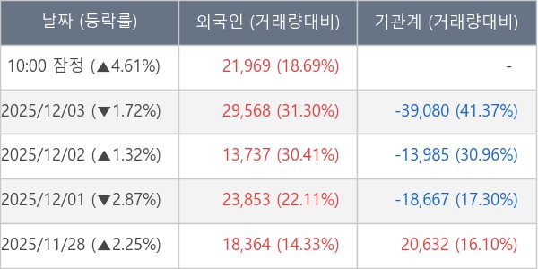 [표] 외국인ㆍ기관 순매매량 (단위 주)