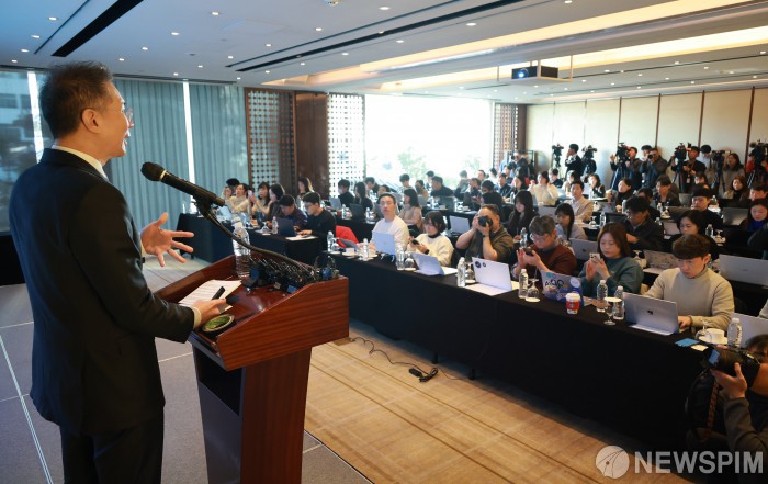 [서울=뉴스핌] 김학선 기자 = 김경훈 OpenAI 코리아 총괄 대표가 4일 서울 중구 웨스틴조선호텔에서 기자간담회를 갖고 국내 기업들의 AI 전환을 본격 지원하겠다는 입장을 밝히고 있다. 이날 간담회는 ChatGPT 출시 3년 이후 나타난 AI 도입 현황을 소개하고 기업 중심의 AI 전환 전략과 실제 효과를 논의하기 위해 마련됐다. 2025.12.04 yooksa@newspim.com