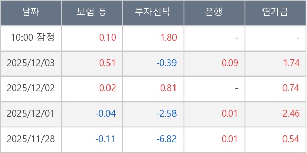 ※ 사모펀드 등 일부 기관의 순매매량은 표시되지 않음
