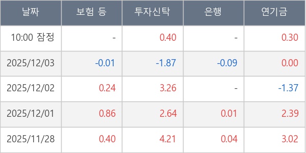 ※ 사모펀드 등 일부 기관의 순매매량은 표시되지 않음