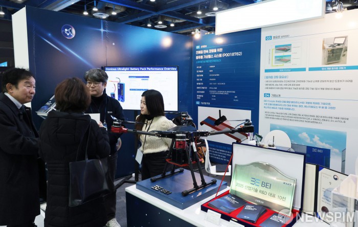 [서울=뉴스핌] 이길동 기자 =4일 서울 강남구 코엑스에서 열린 2025 코리아 테크 페스티벌에서 방문객들이 관계자의 설명을 들으며 전시부스를 둘러보고 있다. 2025.12.04 gdlee@newspim.com