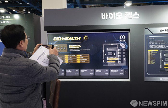 [서울=뉴스핌] 이길동 기자 =4일 서울 강남구 코엑스에서 열린 2025 코리아 테크 페스티벌 전시부스을 찾은 방문객이 전시품을 관람하고 있다. 2025.12.04 gdlee@newspim.com