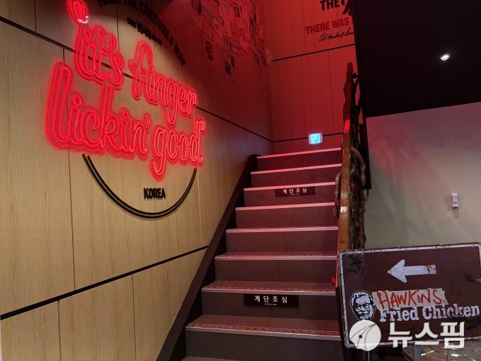 | KFC 신촌점 2층 계단부터 메인 3층까지 기묘한 이야기 유니버스를 구현한 공간이 마련됐다. [사진=송은정 기자] |