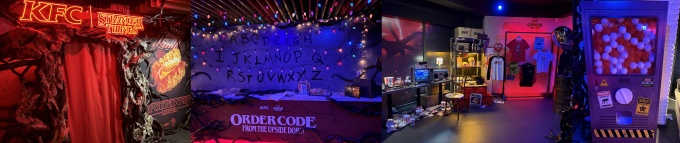 1980년대 레트로 감성을 살린 호킨스 내 KFC 매장을 구현했으며, 곳곳에 레트로풍으로 디자인된 포스터가 배치됐다.