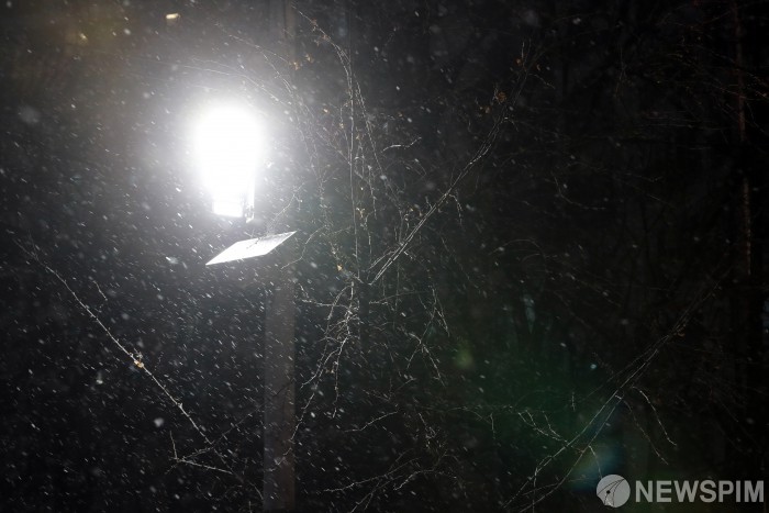 [서울=뉴스핌] 이형석 기자 = 4일 밤 서울 여의도 인근에 눈이 내리고 있다. 2025.12.04 leehs@newspim.com