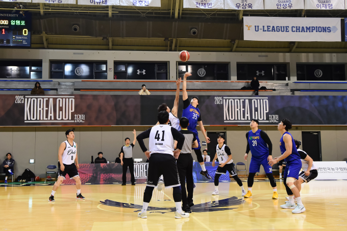 [서울=뉴스핌] 남정훈 기자 = 고교 농구 명문 경복고등학교와 동호인 농구 강호 업템포 간의 '2025 코리아 컵 최강전' 결승 경기가 6일 오후 7시 동국대학교 체육관에서 열린다.