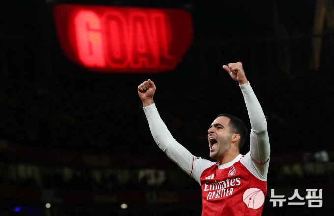 | [런던 로이터=뉴스핌] 아스널의 미켈 메리노가 4일에 열린 브렌트퍼드와의 EPL 14라운드 경기에서 골을 넣은 뒤 환호하고 있다. 2025.12.05 wcn05002@newspim.com |